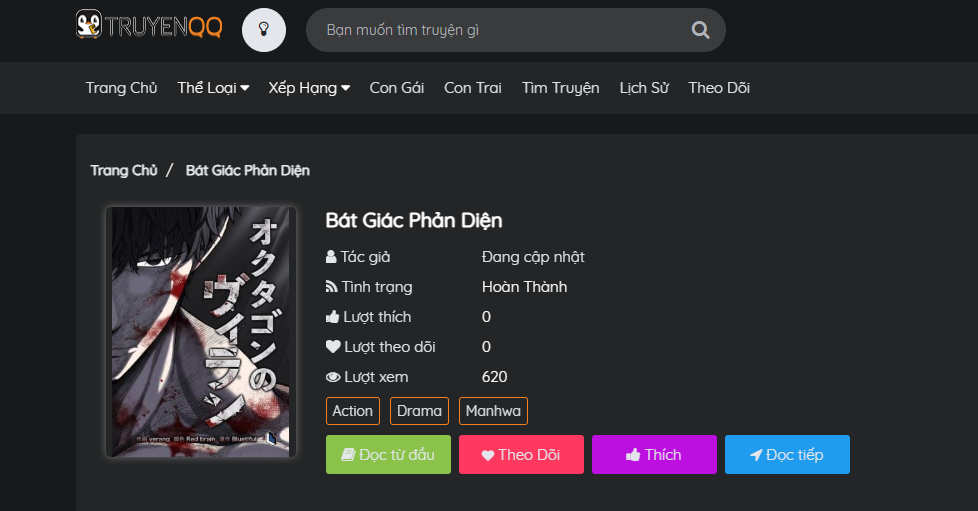 Giao diện tối giản – tìm truyện nhanh, đọc truyện gọn